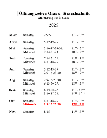 Das Grüngut, z. B. Rasenschnitt, kann am Parkplatz des Sportgeländes angeliefert werden.