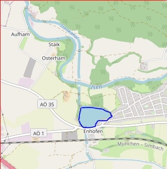 • Eine weitere Alternativroute führt auf den Schokoripperl über die Isen. Am anderen Ufer weiter durch das Naturflächendenkmal „Eichenwäldchen“ oder entlang dem Ufer des Isen-Speichersees durch den westlichen Ortsteil Winhörings zur Isenbrücke.