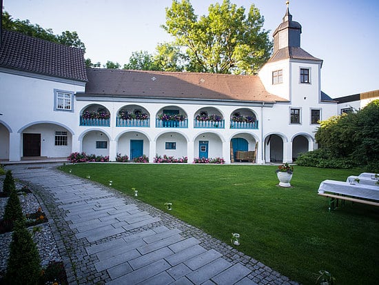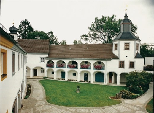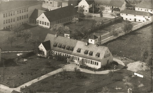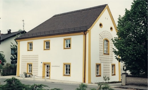 Geht man beim Gasthof „Isensee“, also beim „Schatz“, den Berg nach Enhofen hinunter, erblickt man nach dem Bahnübergang und einer kleinen Gruppe von Bauernhäusern im Tal unten am Aubach ein Gebäude, dessen Funktion sich einem nicht auf Anhieb erschließt: „ein mächtiger Hausstock mit behäbig gekröpftem roten Schindelwalmdach und hohen Fenstern, umfriedet von einer übermannshohen Buchenhecke und gleichsam beschirmt von einer riesigen Lärche, im Süden begrenzt durch den Aubach.“