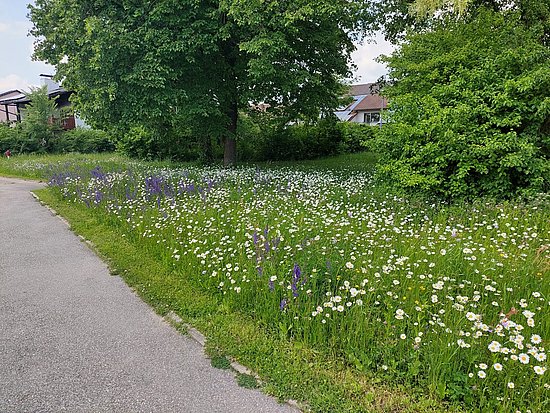 Mit dem Bamberger Platz hat die Gemeinde zentrumsnah eine grüne Oase geschaffen: Schattenblüher unter den Bäumen wechseln sich ab mit Blumen, die das volle Sonnenlicht brauchen. Ein Feuchtbiotop eingerahmt von Hecken, versteckte Eckchen, ein abgeschirmtes schattiges Bankerl zum Sinnieren, Abschalten oder für gemeinsame Momente. Wer den Blick dafür hat, für den ist der Bamberger Platz ein kleiner verwunschener Platz natürlicher Vielfalt.