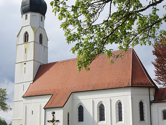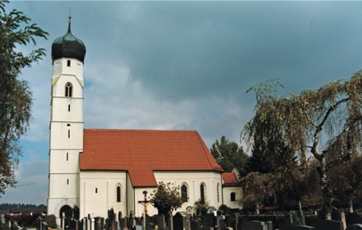 Ihr Zwiebelturm grüßt schon von weitem, wenn man von Neuötting kommend auf Winhöring zufährt, wie ein erhobener Zeigefinger. Je nach Sonnenstand glänzt an seiner Spitze das vergoldete Kreuz wie ein Wegweiser auf das anzustrebende Ziel unseres Lebens.