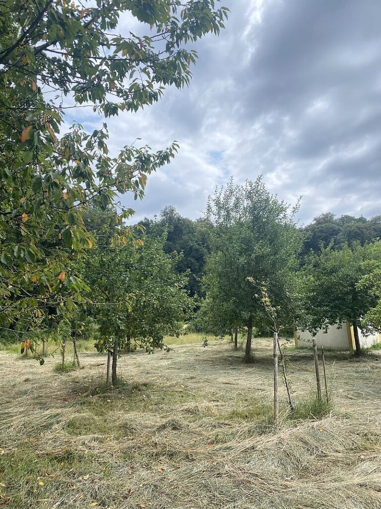 Der Gast, der den Weg hinauf zum Schloss Frauenbühl nimmt, kommt an einer  Streuobstwiese vorbei. Sie liegt, nicht auf den ersten Blick erkennbar, direkt hinter dem Autoparkplatz und den Kastanienbäumen. Ehemals Wertstoffhof und Grüngutsammelstelle, wurde die Fläche zu einem Biotop umgestaltet.